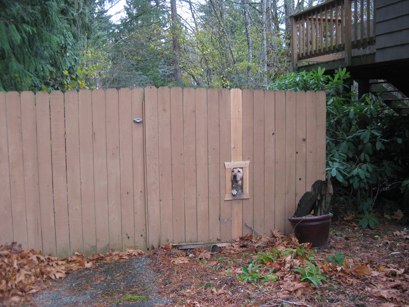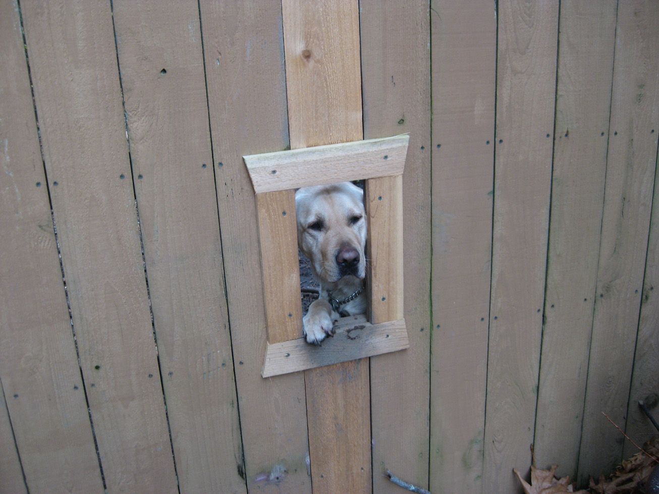 Kootenai, I’m really glad to be back home. My person’s sister had that frame put in her fence after her dogs tore part of the fence out so they could peek.