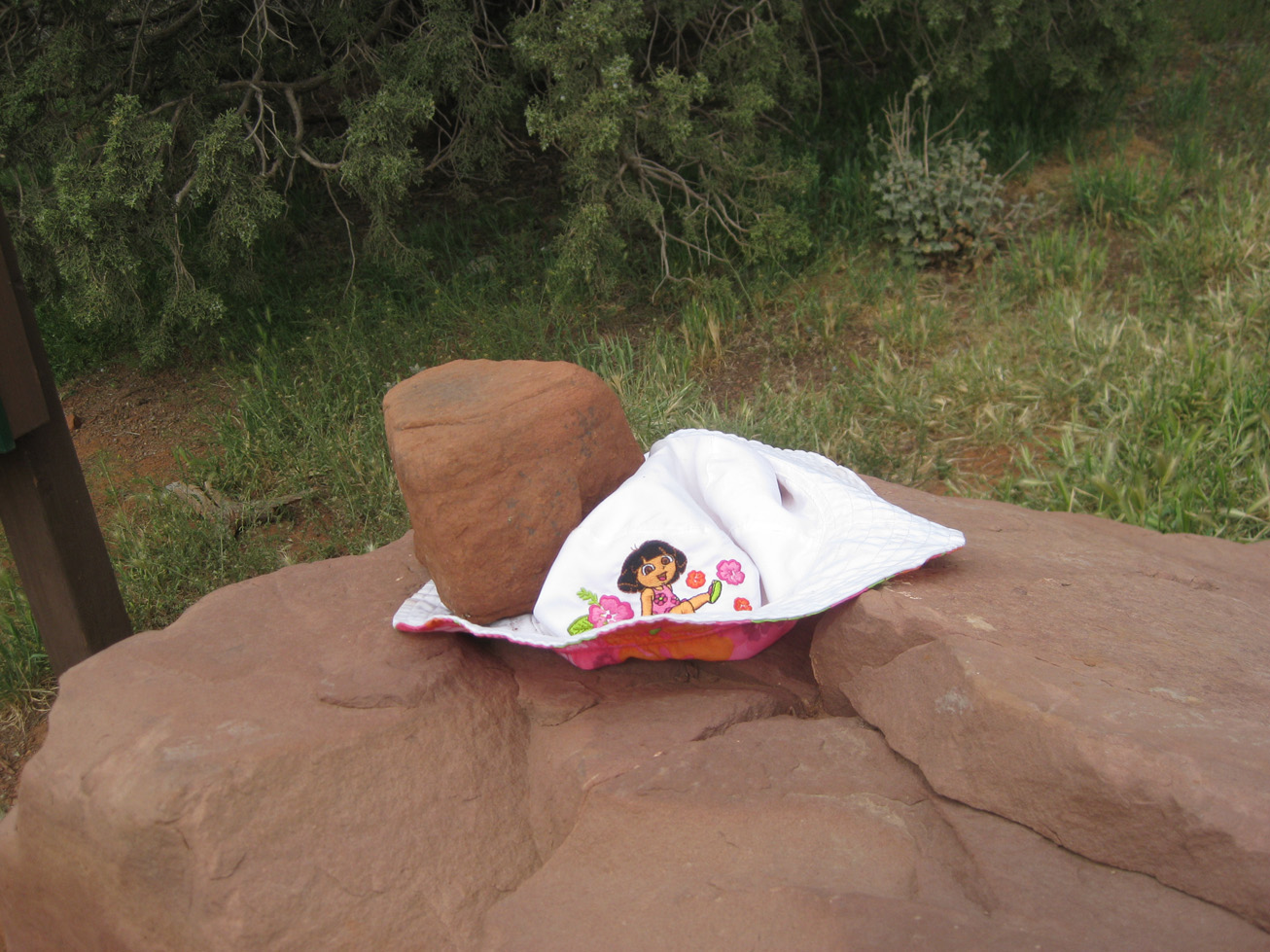 What a great idea. I hope everybody finds their lost stuff. Is that a sweet little Dora the Explorer hat on that rock?