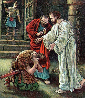 My person says there was a big earthquake when Paul and Silas were singing and all the prison doors flew open. The jailer thought all the prisoners had escaped and was about to kill himself because he would be executed for letting the prisoners go.