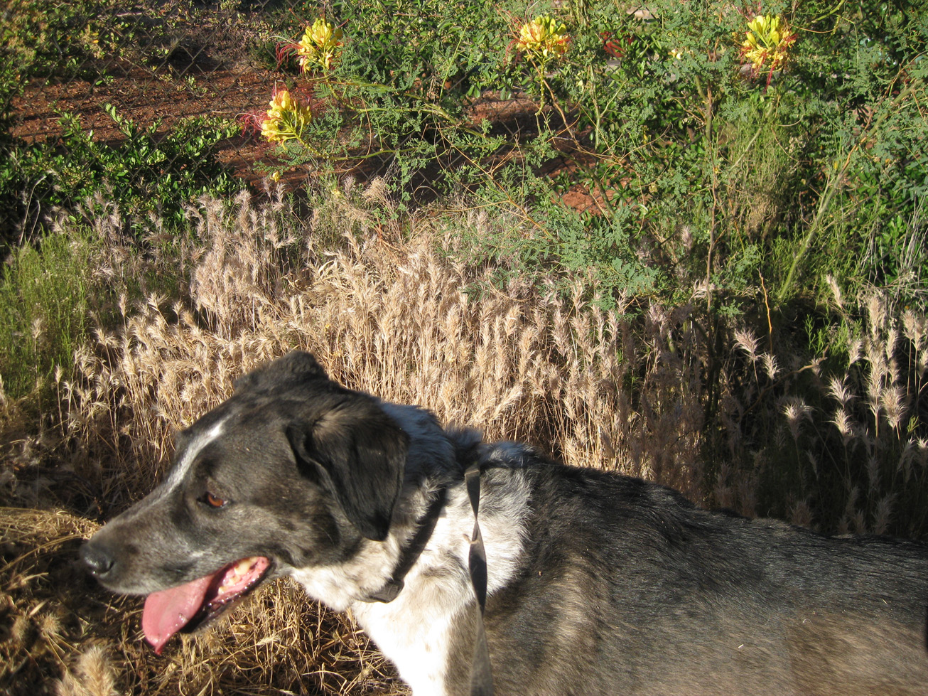 Mom thinks the Bird of Paradise plants are very pretty but we agree it would be terrible to have one of those up your nose so keep protecting yours. We didn’t know there were so many blooming plants by your house, we must drive too fast to see them. M & D are going to have to walk next time.