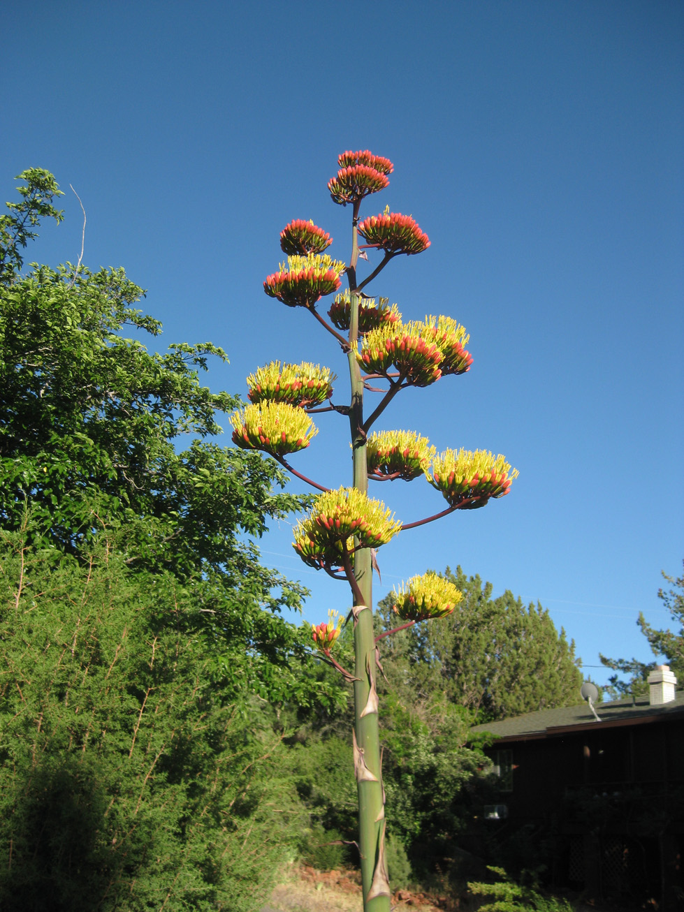 Patreciau, there are other flowers called Bird of Paradise that are different than the ones that grow here. As far as the century plants – lots of people do have them growing in their yard. They are called agave. They hang out as agave for many years before they turn into century plants, drop their seeds, and then die.