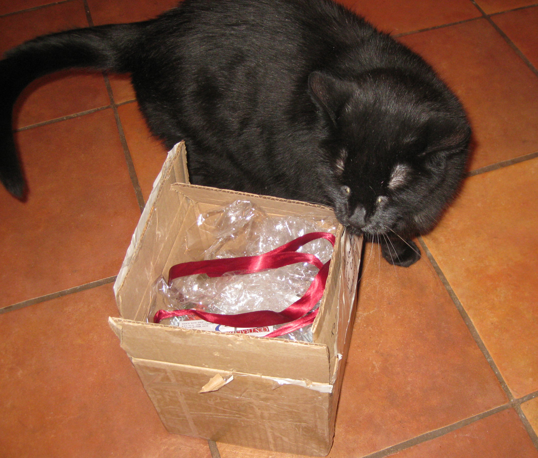 The first one was a bag with cats all over it. My person said she had a use for it so I thought I’d be generous and give it to her. Actually, I couldn’t figure out what I was going to do with that bag anyway.