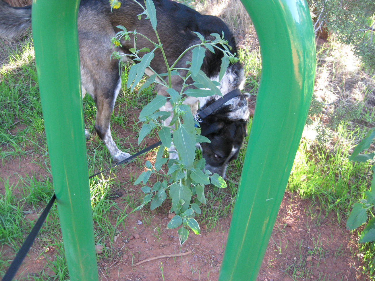 Oh Bongo! You peed on the sunflowers! I thought it was pretty nice of them to want to hang out with the bike racks. LOL!