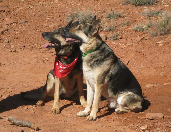 Those are beautiful Shepards to walk with Bongo but we agree that it wasn’t fair that they got to go off leash and you had to stay right with Mom. She just doesn’t want to lose you then she would be really sad. By the way when Mom throws things for us to fetch we sit down and tell her you threw it you go get it so she doesn’t throw anything. Rethink making her go get it she might not throw again:(