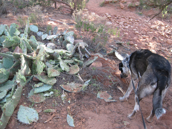You see, I ran into a bunch of prickly pear cactus that was totally smashed up, demolished, and destroyed. And now I’m sure all those police officers are looking for the cactus murderers.