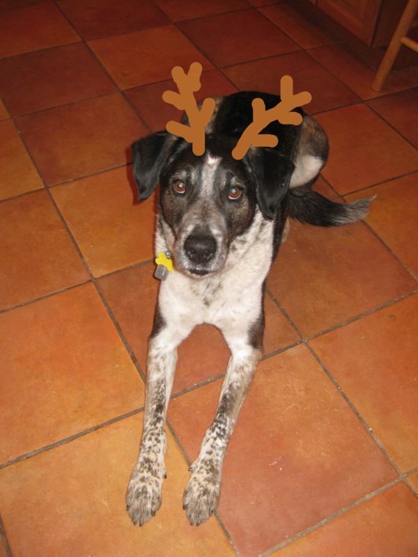You look great with those antlers, Bongo! My mom has a hair band shaped antlers made with felt and sometimes tries to put it on me….because she says our faces, deer and dog, are very similar except those antlers, so she teases me with them…*sigh*