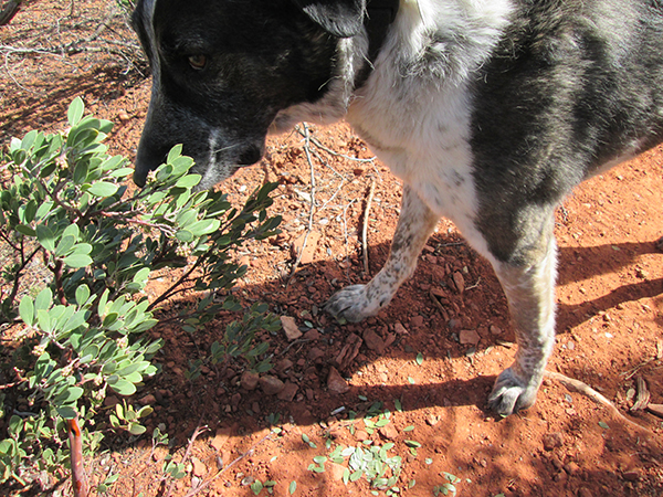 Those are quite a lot of leaves down there Bongo! I’m as curious as you. Do manzanitas have a strong smell? Maybe that’s why you aren’t picking up any clues. Happy Saturday!