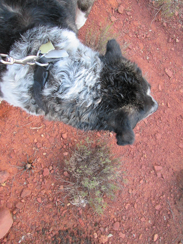 Awe, your dog is so cute!! That is a huge tarantula!!