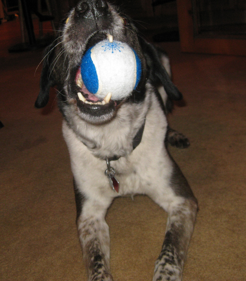 Come on, Scratchy. Pick that ball up in your little paws and throw it to me. I know you can do it.