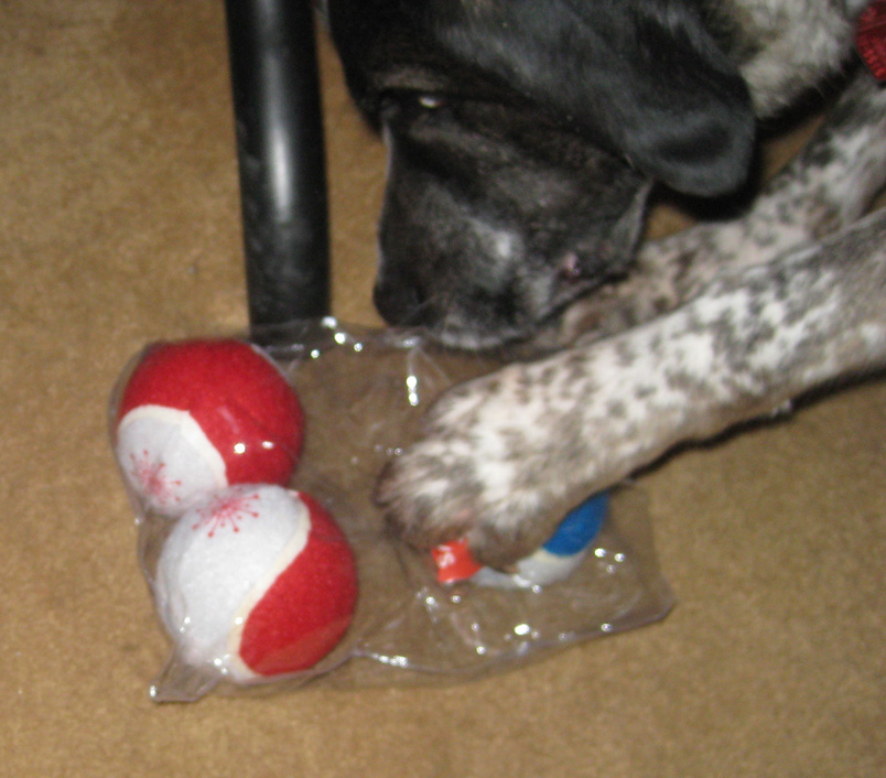 Well, the other day Scratchy was closest so I brought him my ball and dropped it at his feet. He just looked at it. He didn’t toss it for me. He didn’t even bat it back to me. He could have at least done that.