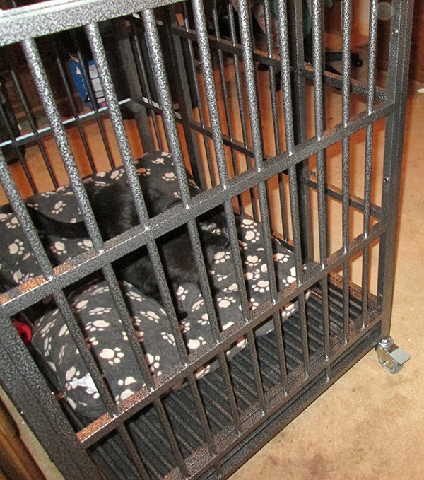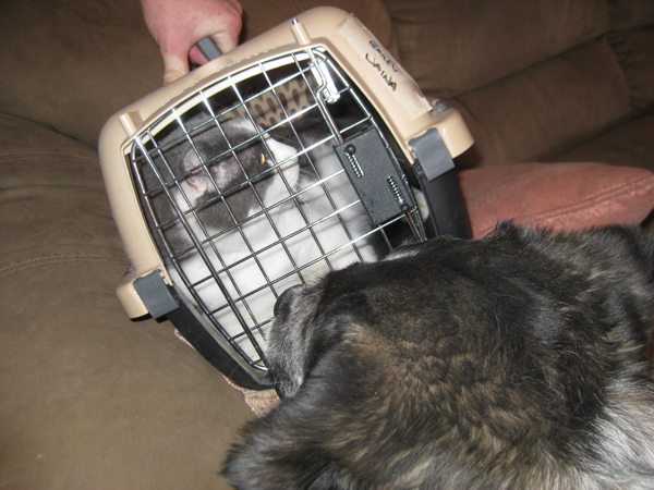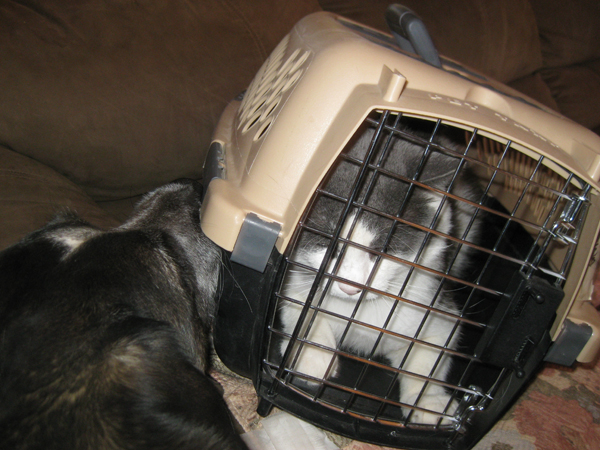 Scratchy had to go to the vet the other day so his cat jail was sitting out.