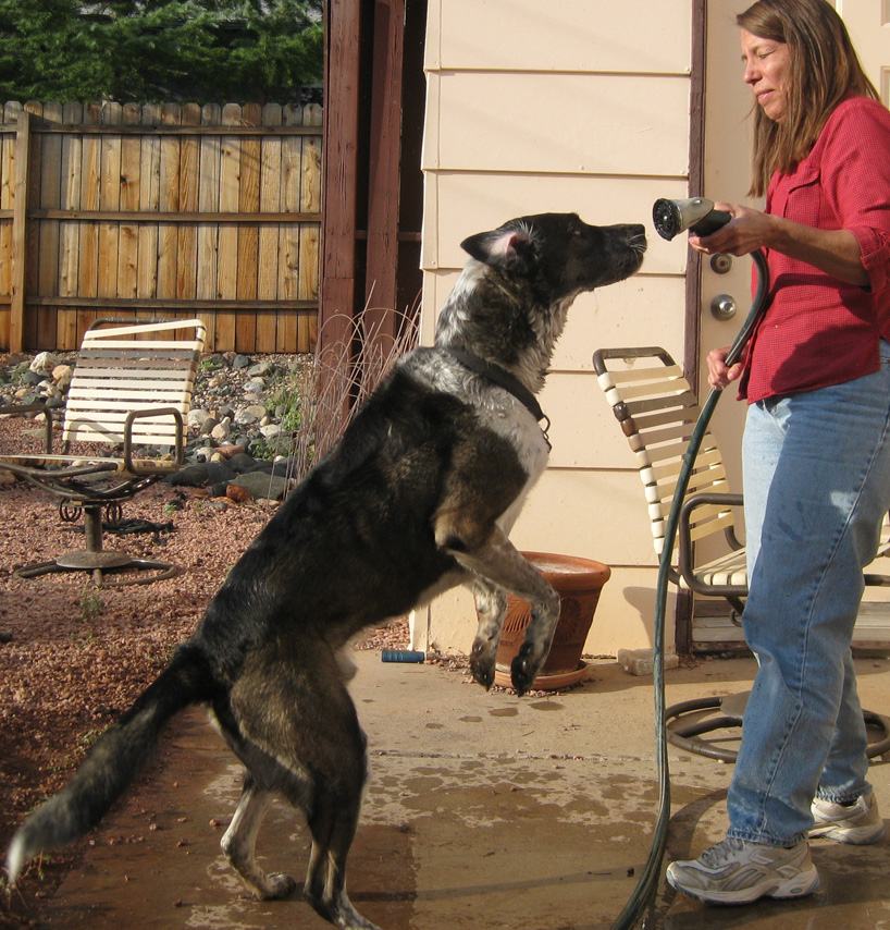 My neighbor is the best. He plays with me and runs his hose just for me so I can jump up to drink the water. This is one of my most absolute favorite things to do.