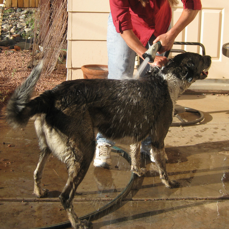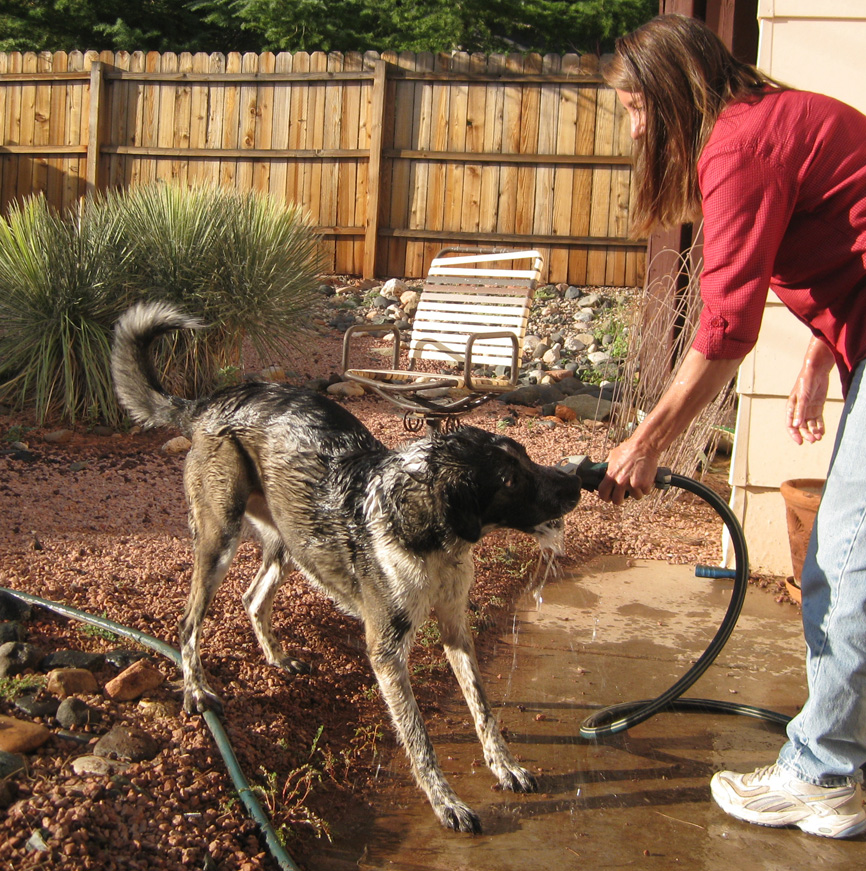 Sometimes I catch all the water in my mouth when it comes out of the hose, and sometimes it’s just fun to jump after it. Someone once called me the happy jumping dog. I guess this is why – I love to jump. And when there’s water involved it’s all the more fun.