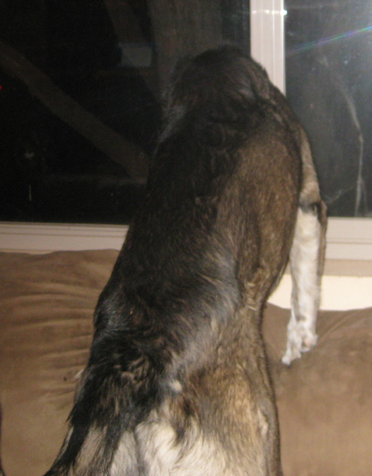 Bongo Looking OutsideLast night was one of those times. I heard someone out in the yard and I gave a warning bark. I don’t know much about time, but my person says it was around 4:00 in the morning. Well that warning bark didn’t work. Whoever it was out there didn’t leave – so I barked some more. And I barked again.