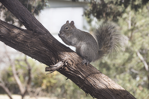 Not only is that squirrel hanging out in my tree, but he’s trying to taunt me with food.
